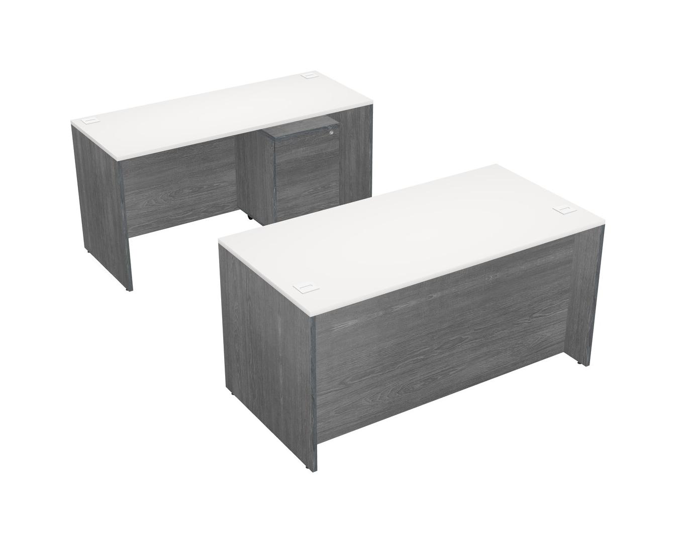 Office Parallel Desk Credenza Desk + Wooden Mobile Drawers