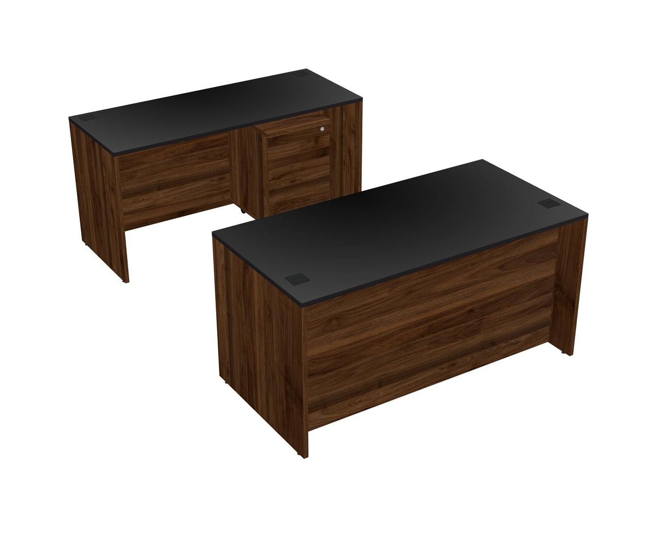 Office Parallel Desk Credenza Desk + Wooden Mobile Drawers