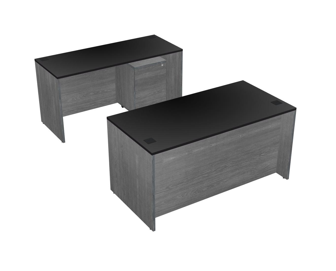 Office Parallel Desk Credenza Desk + Wooden Mobile Drawers