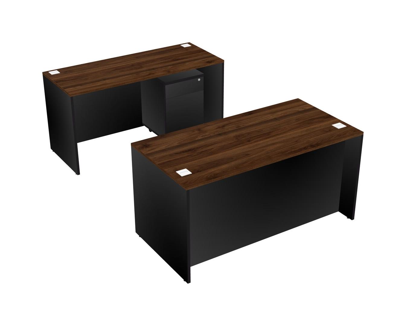 Office Parallel Desk Credenza Desk + Wooden Mobile Drawers