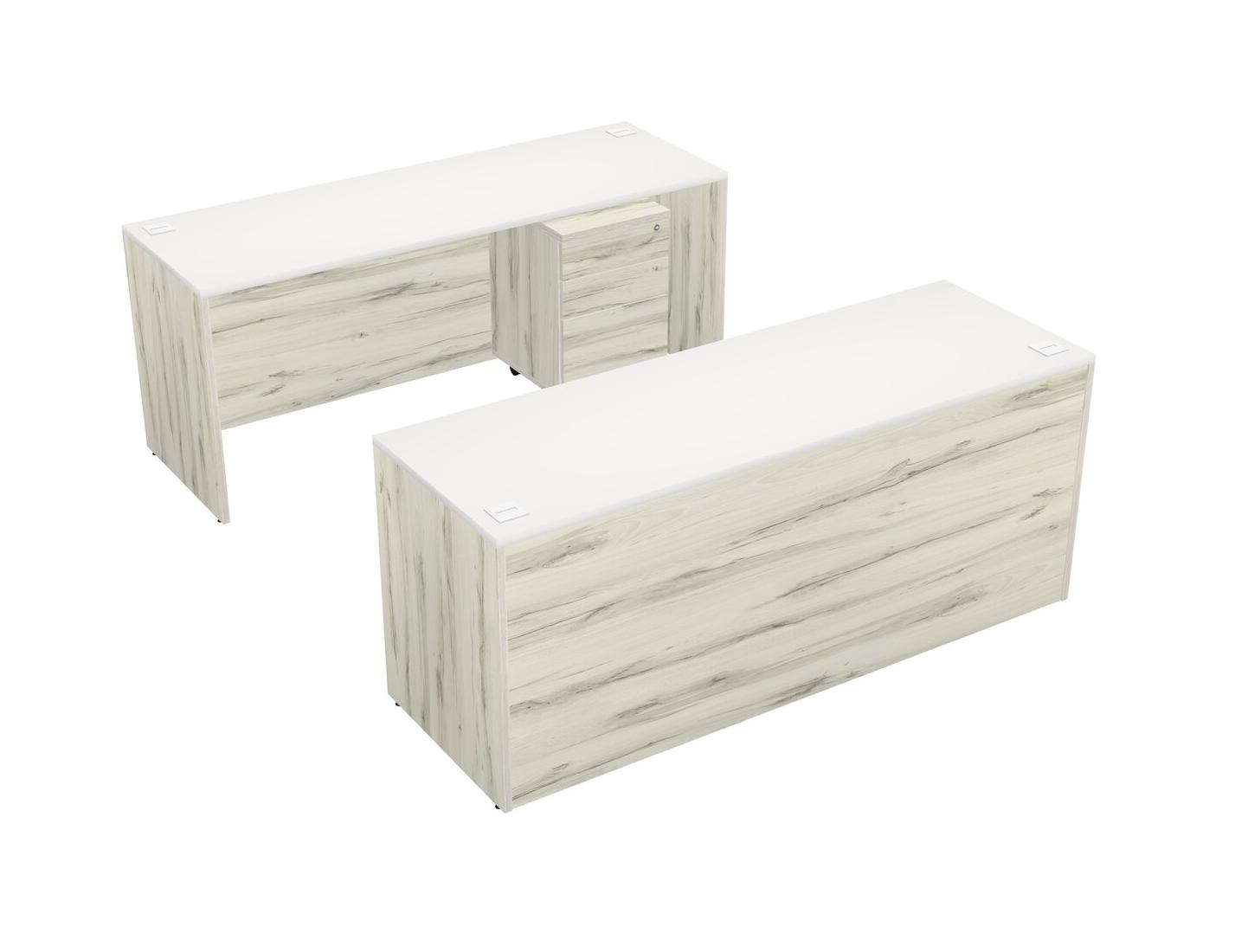 Office Parallel Desk Credenza Desk + Wooden Mobile Drawers