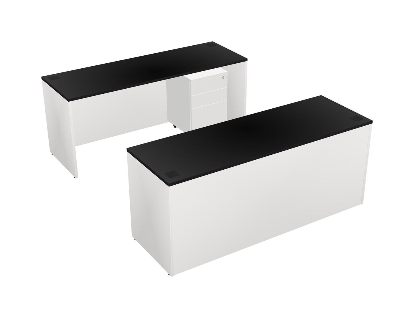 Office Parallel Desk Credenza Desk + Wooden Mobile Drawers