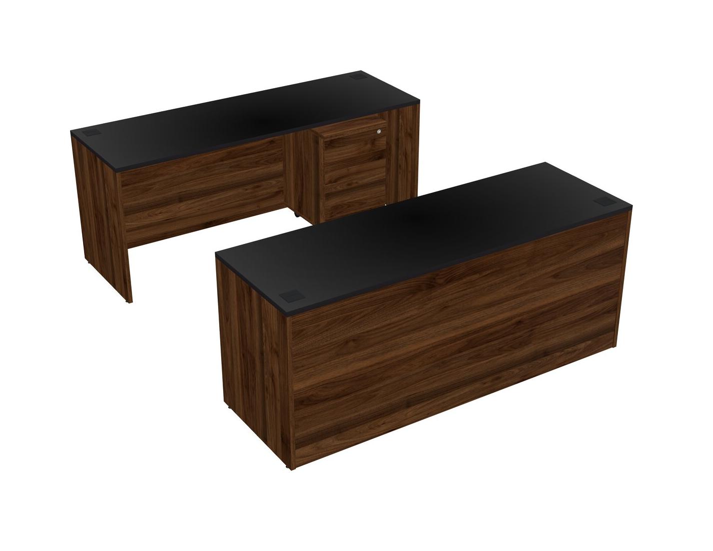 Office Parallel Desk Credenza Desk + Wooden Mobile Drawers
