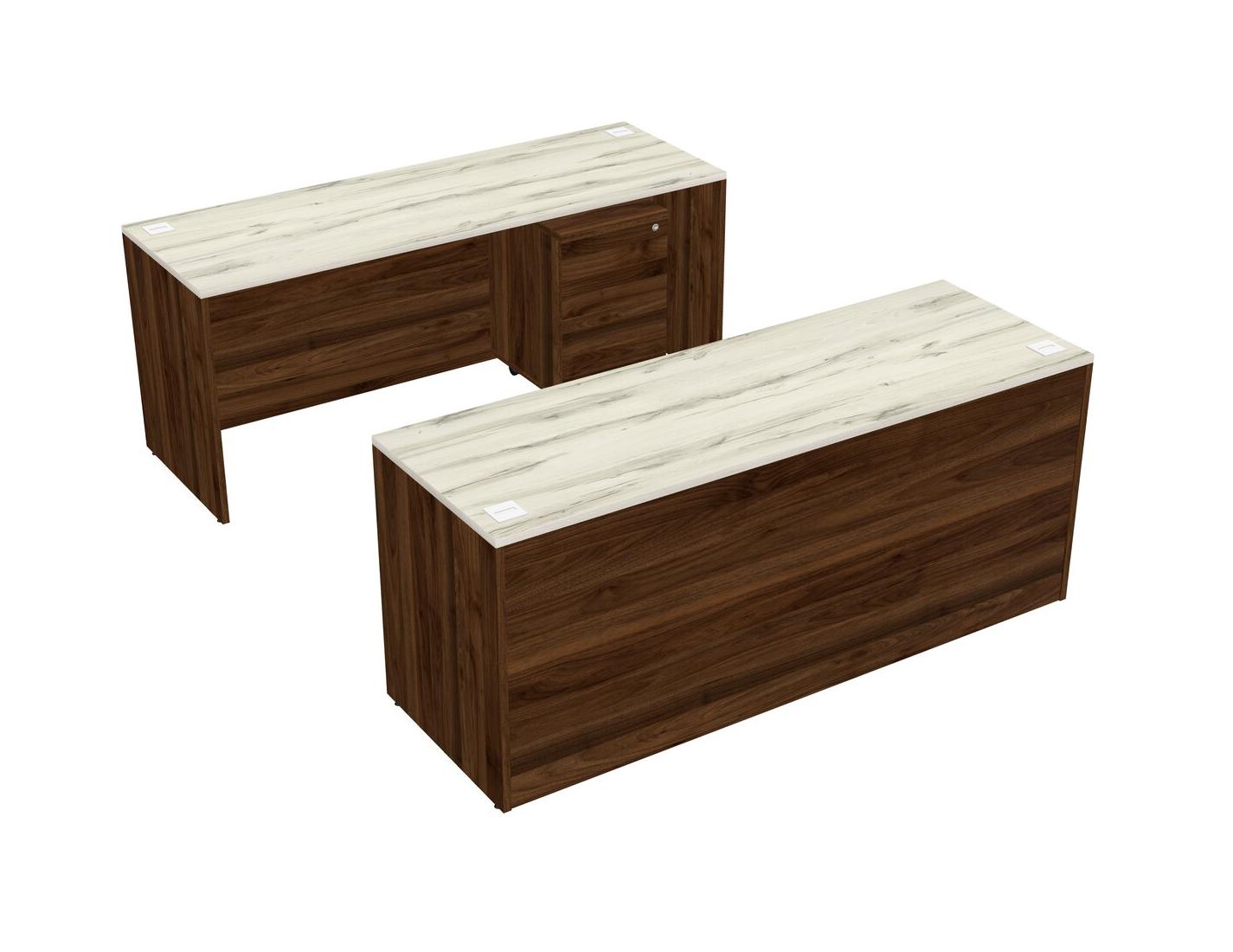 Office Parallel Desk Credenza Desk + Wooden Mobile Drawers