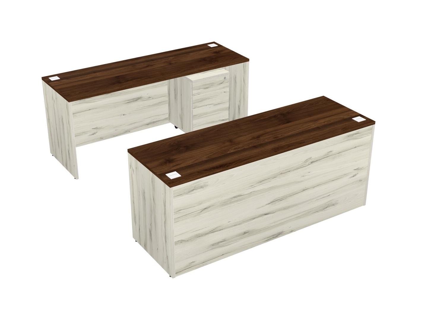 Office Parallel Desk Credenza Desk + Wooden Mobile Drawers