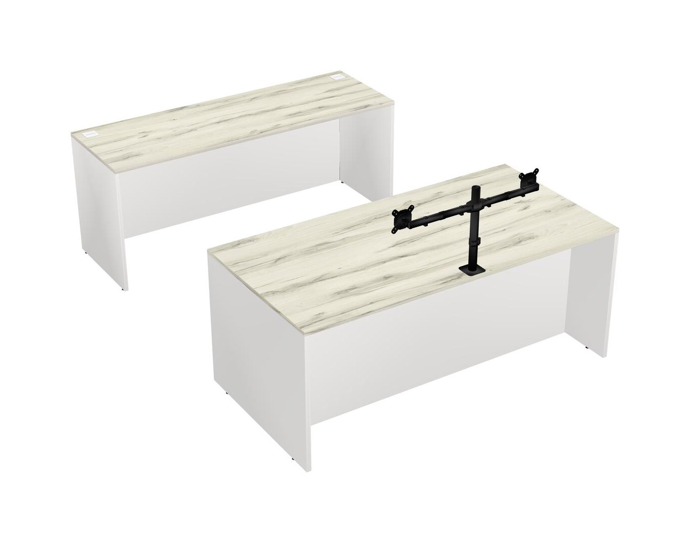 Office Parallel Desk Credenza Desk + Monitor Arm (double Arms)