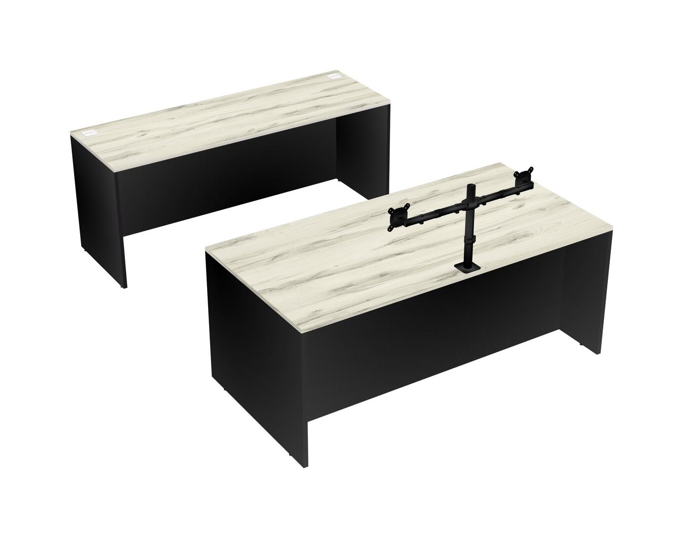 Office Parallel Desk Credenza Desk + Monitor Arm (double Arms)