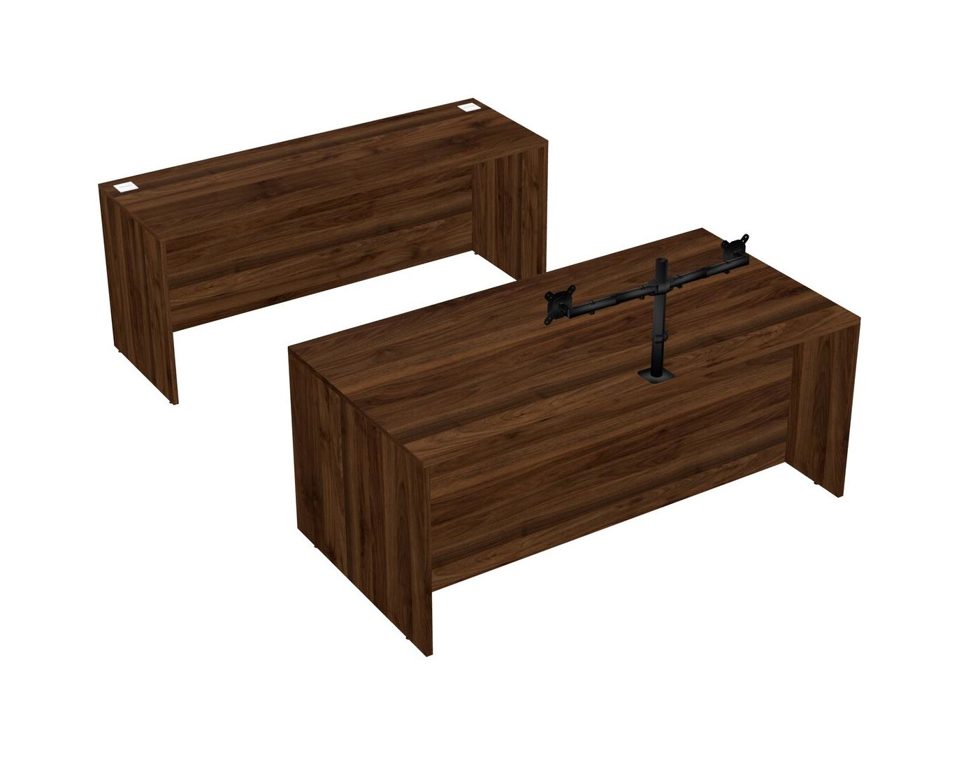 Office Parallel Desk Credenza Desk + Monitor Arm (double Arms)