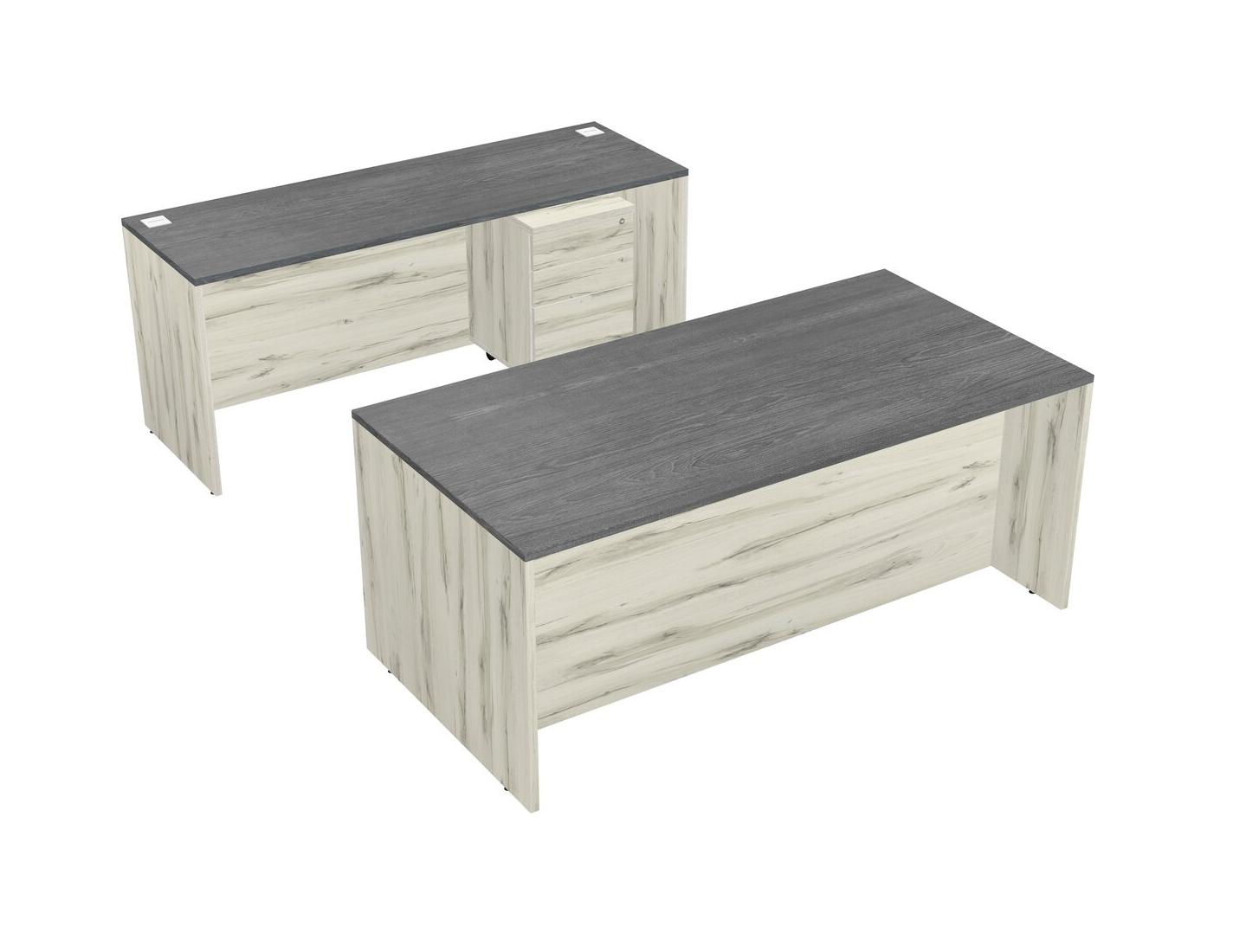 Office Parallel Desk Credenza Desk + Wooden Mobile Drawers