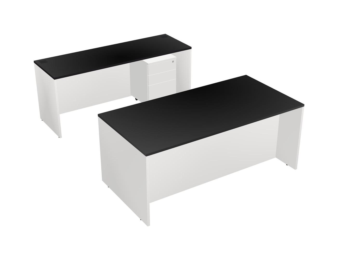 Office Parallel Desk Credenza Desk + Wooden Mobile Drawers