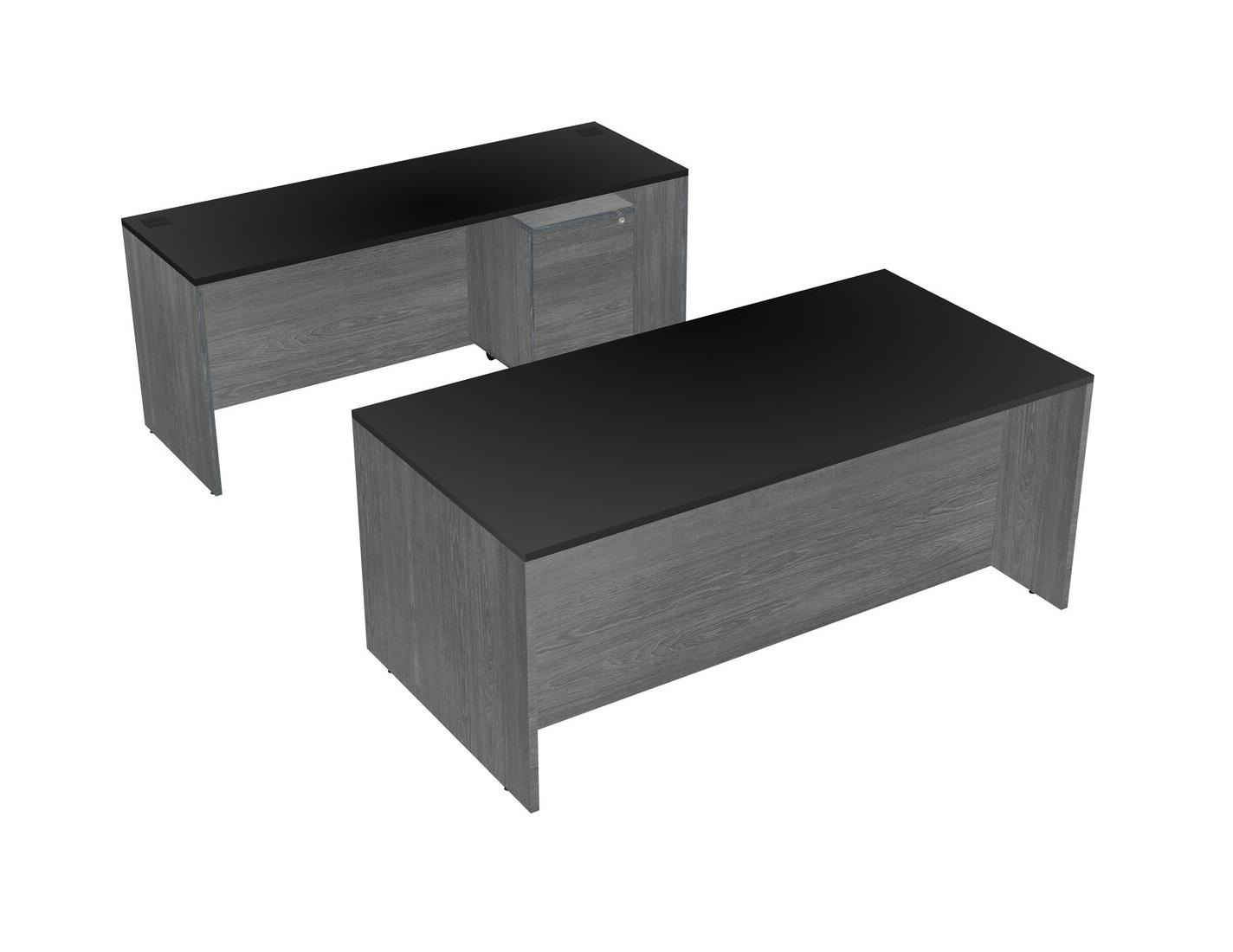 Office Parallel Desk Credenza Desk + Wooden Mobile Drawers
