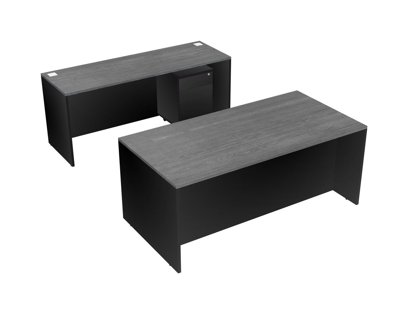Office Parallel Desk Credenza Desk + Wooden Mobile Drawers