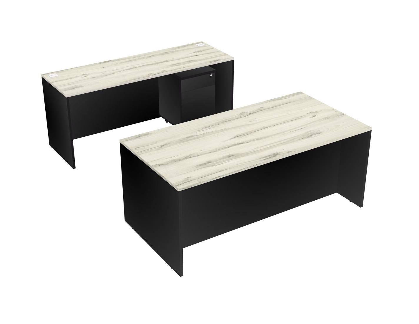 Office Parallel Desk Credenza Desk + Wooden Mobile Drawers