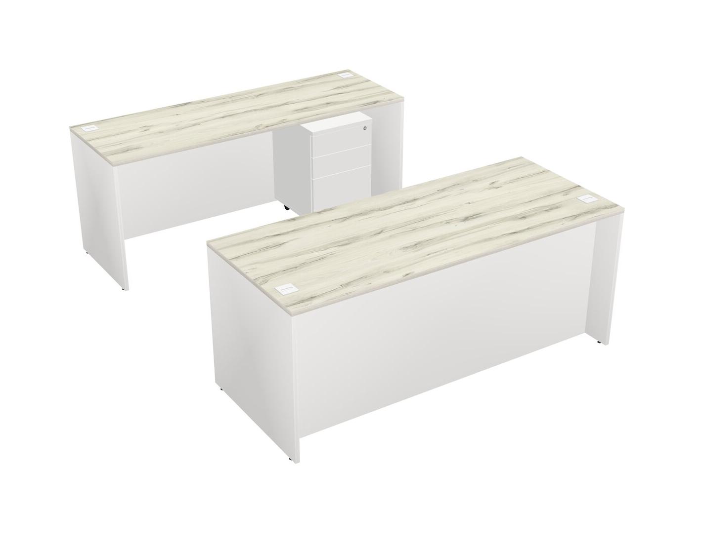 Office Parallel Desk Credenza Desk + Wooden Mobile Drawers