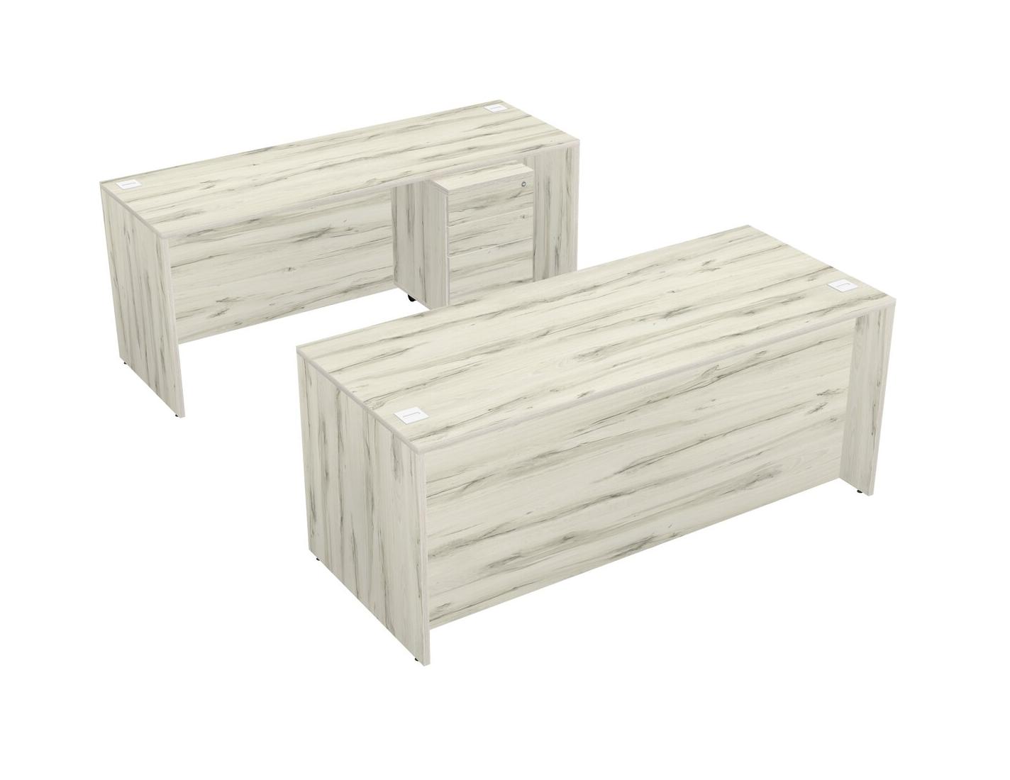 Office Parallel Desk Credenza Desk + Wooden Mobile Drawers