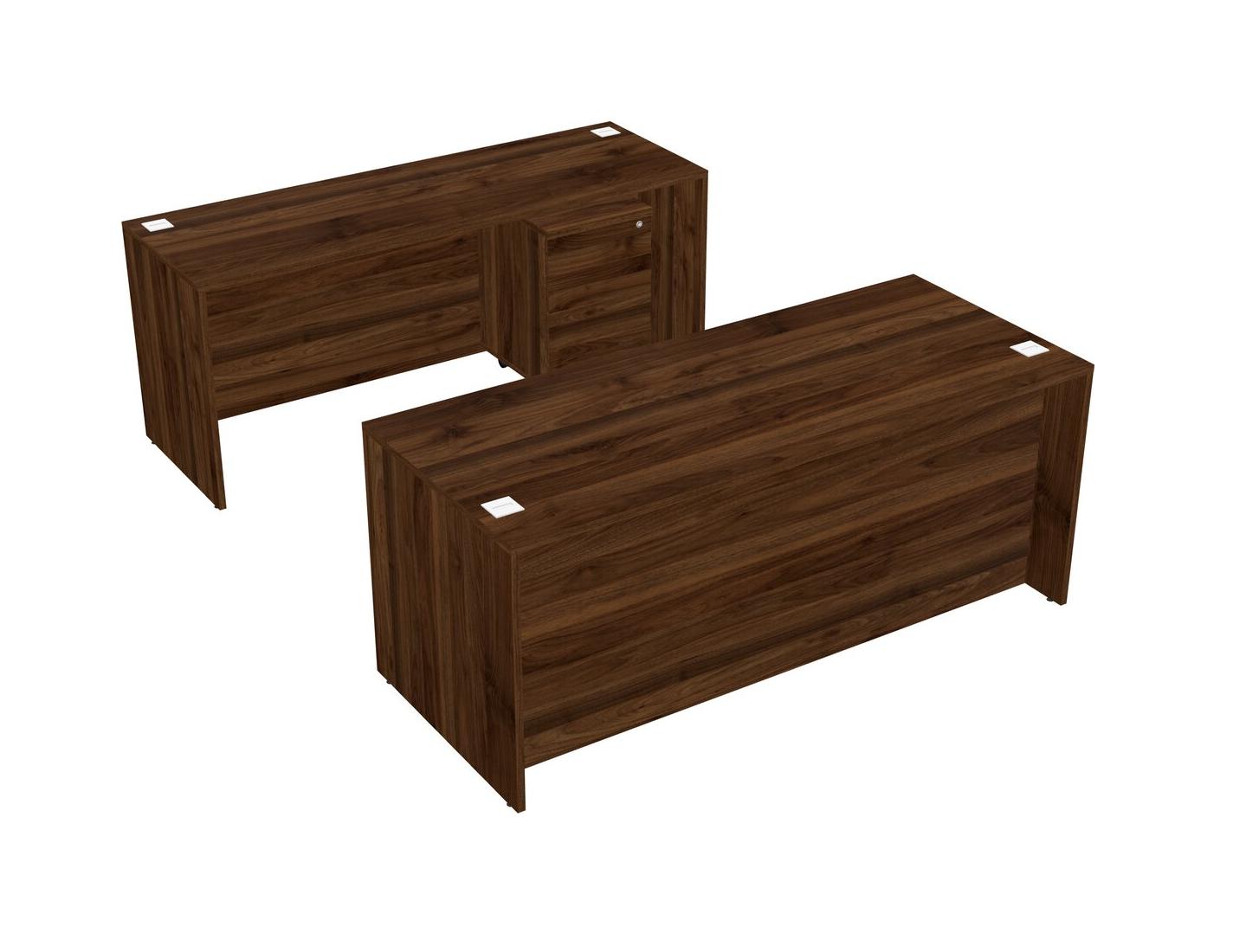 Office Parallel Desk Credenza Desk + Wooden Mobile Drawers