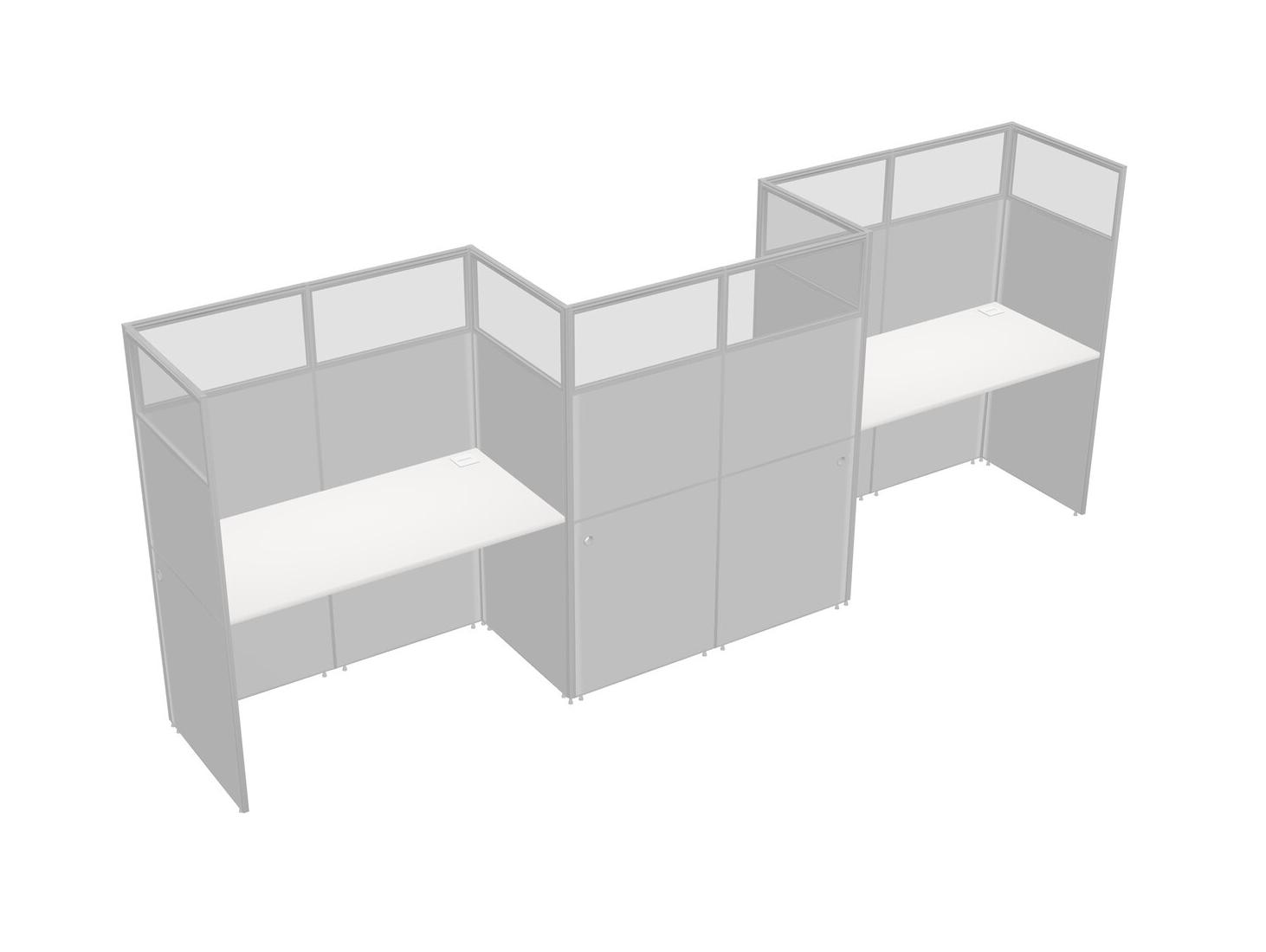 White Rectangular Cubicle Workstations For 3 - Zigzag Formation