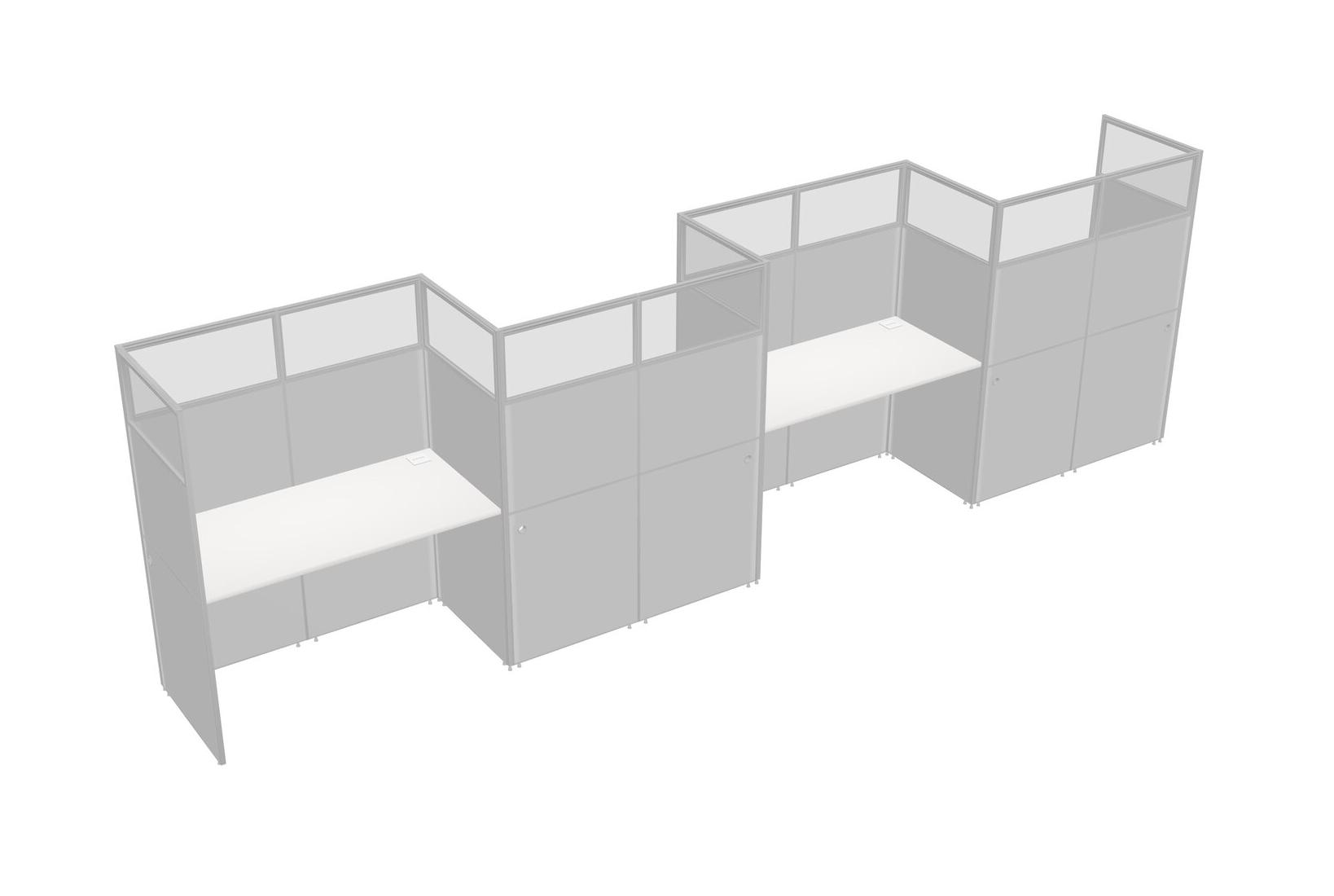 White Rectangular Cubicle Workstations For 4 - Zigzag Formation