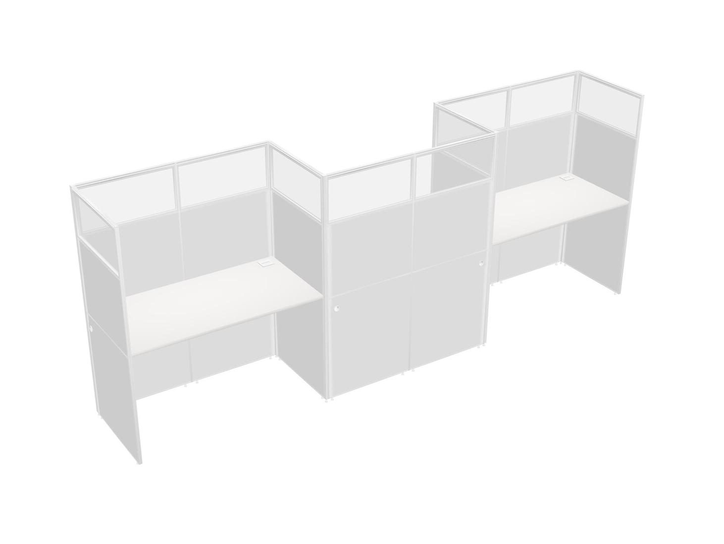White Rectangular Cubicle Workstations For 3 - Zigzag Formation