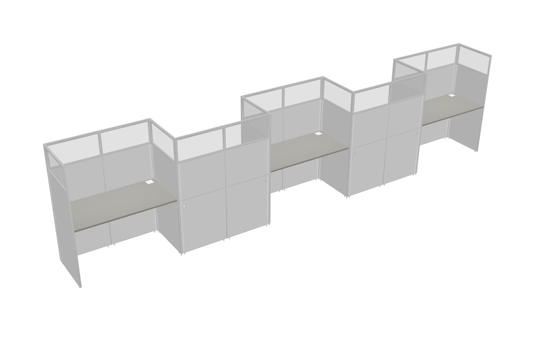 Grey Shadows Rectangular Cubicle Workstations For 5 - Zigzag Formation