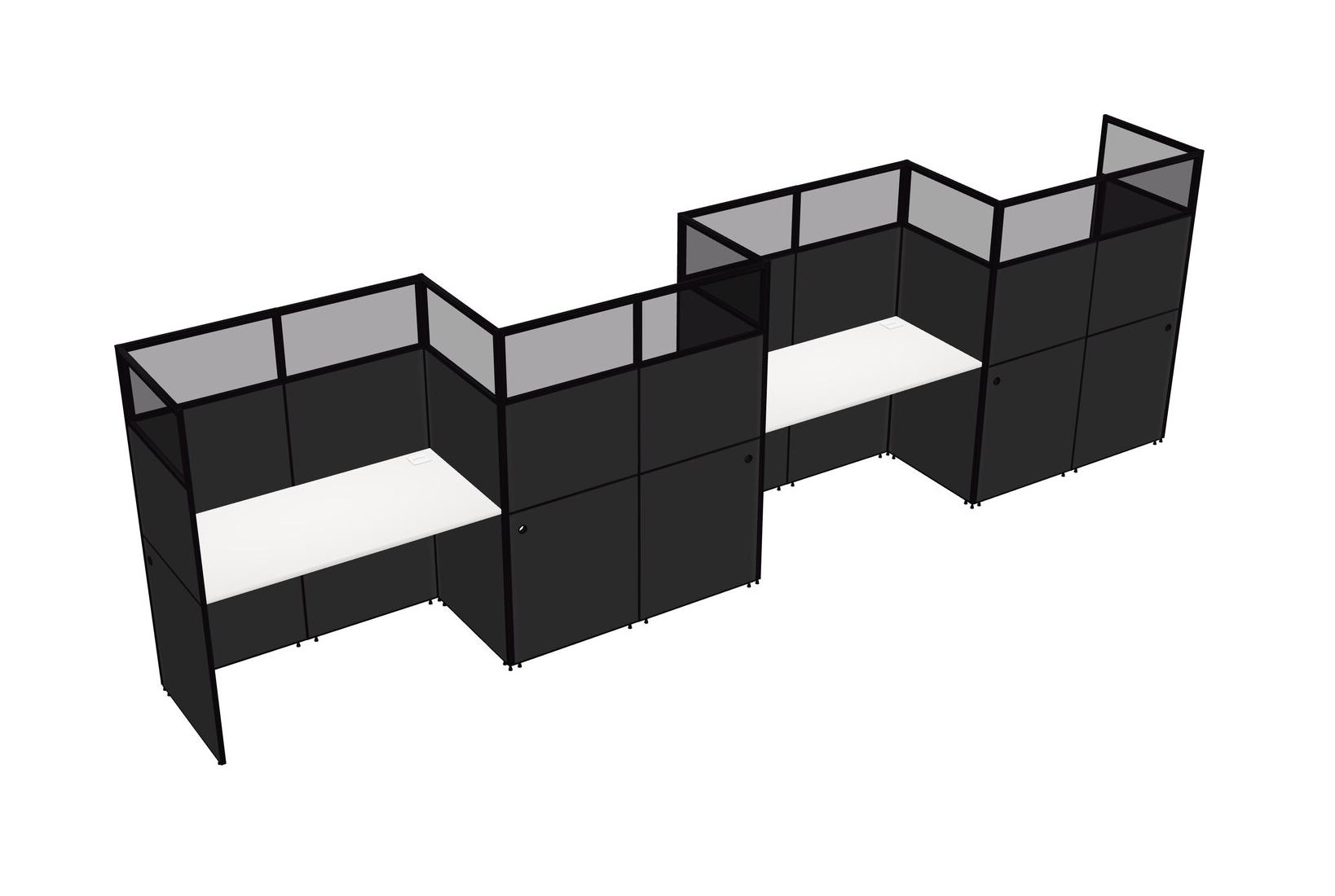 White Rectangular Cubicle Workstations For 4 - Zigzag Formation