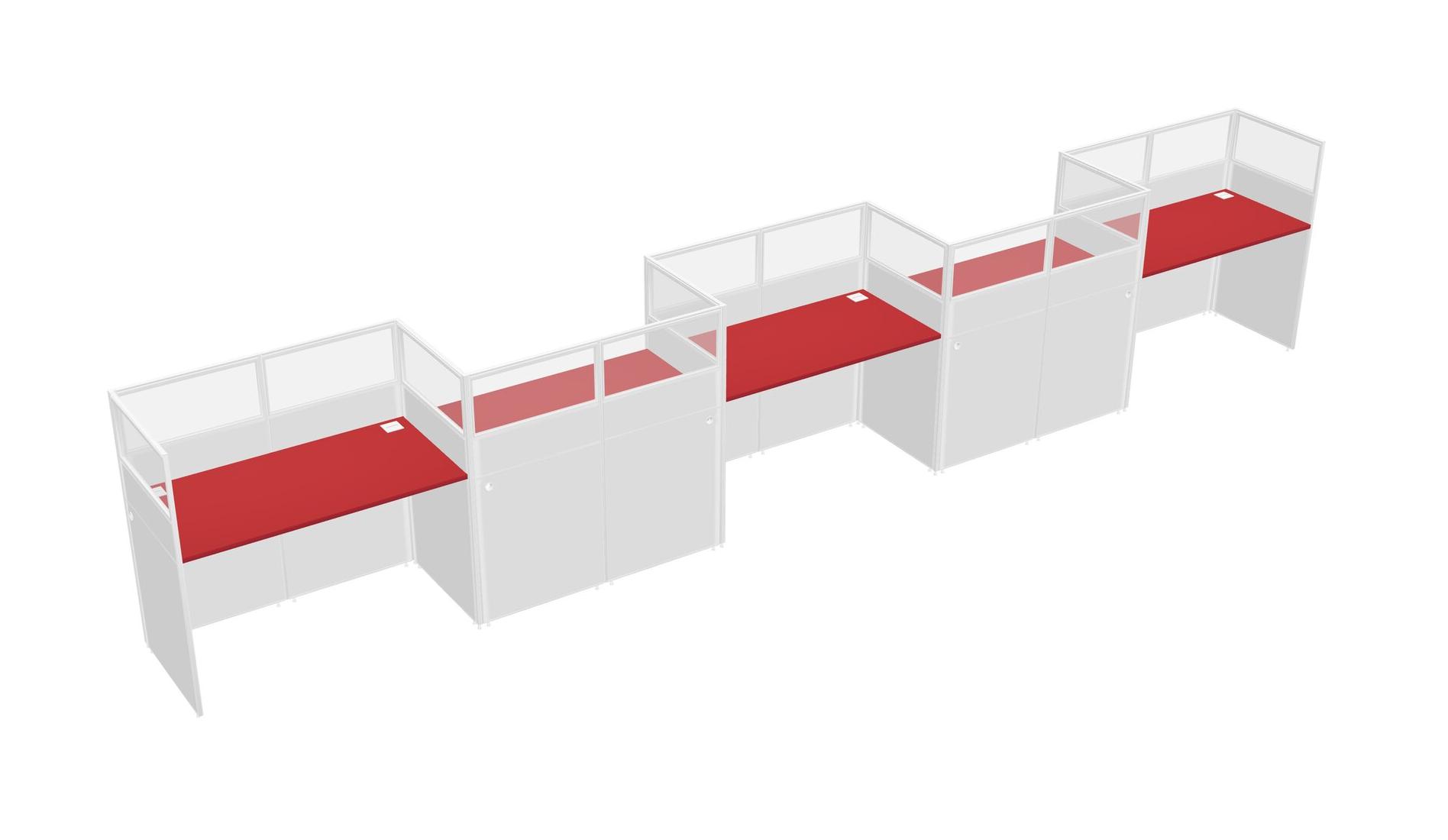 Prism Red Rectangular Cubicle Workstations For 5 - Zigzag Formation