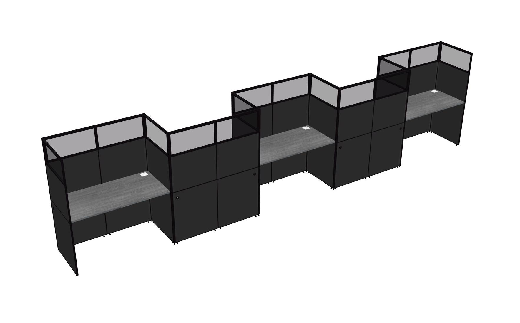 Grey Rectangular Cubicle Workstations For 5 - Zigzag Formation