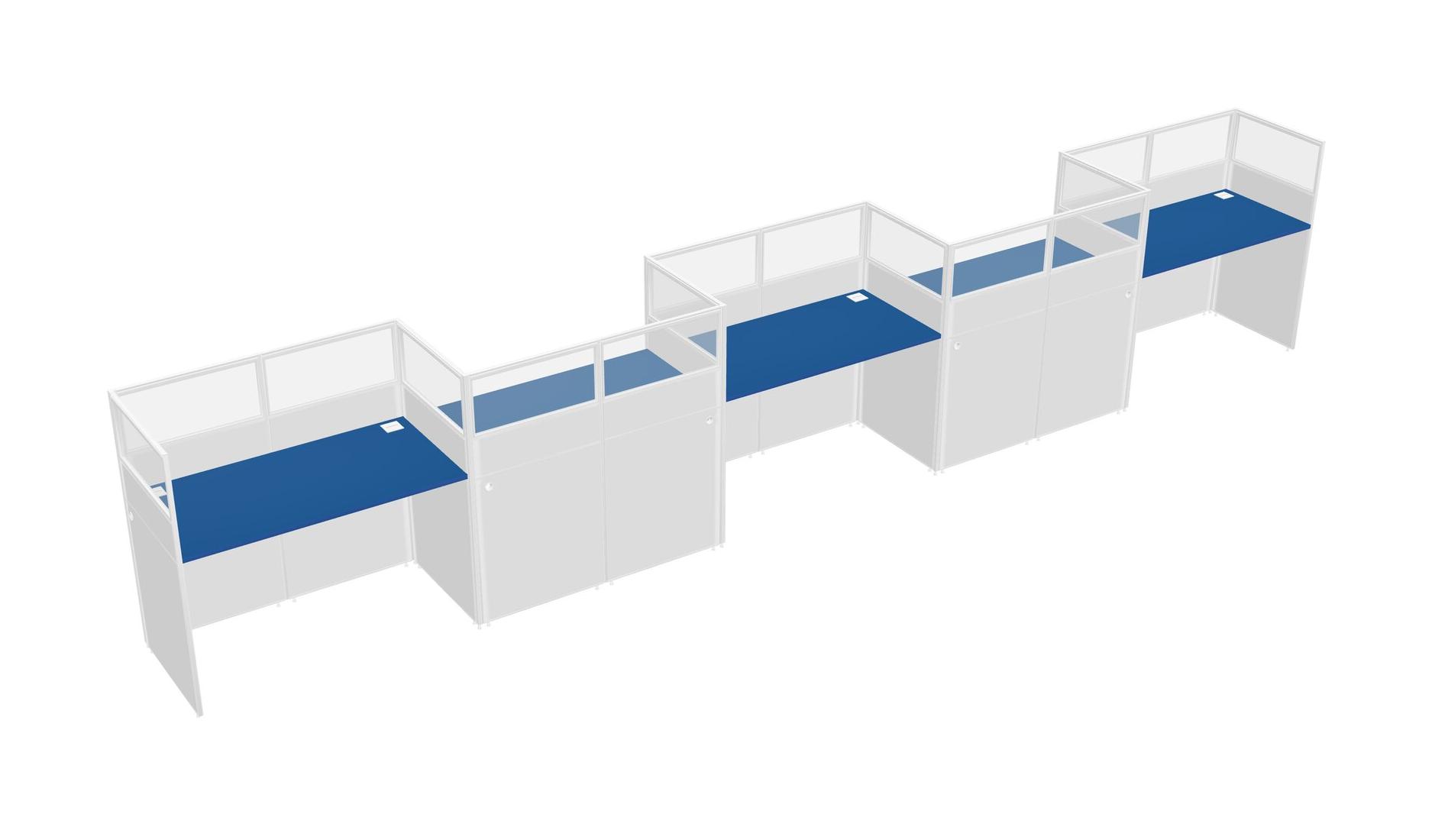 Prism Blue Rectangular Cubicle Workstations For 5 - Zigzag Formation