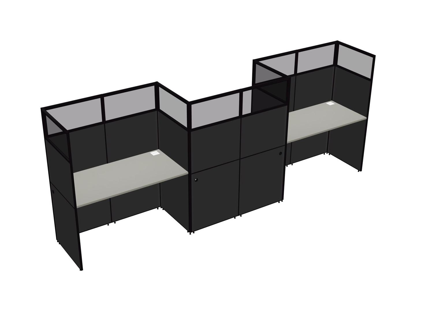 Grey Shadows Rectangular Cubicle Workstations For 3 - Zigzag Formation