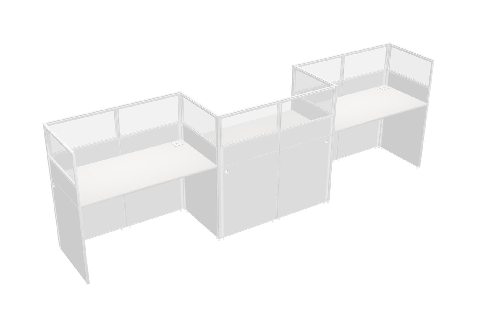 White Rectangular Cubicle Workstations For 3 - Zigzag Formation