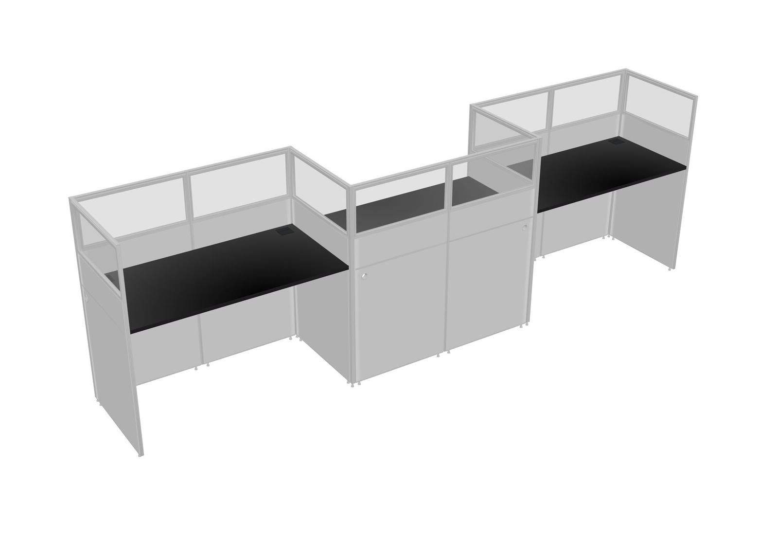Black Rectangular Cubicle Workstations For 3 - Zigzag Formation