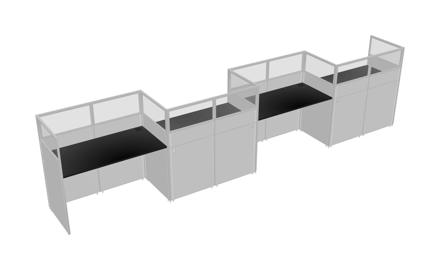 Black Rectangular Cubicle Workstations For 4 - Zigzag Formation