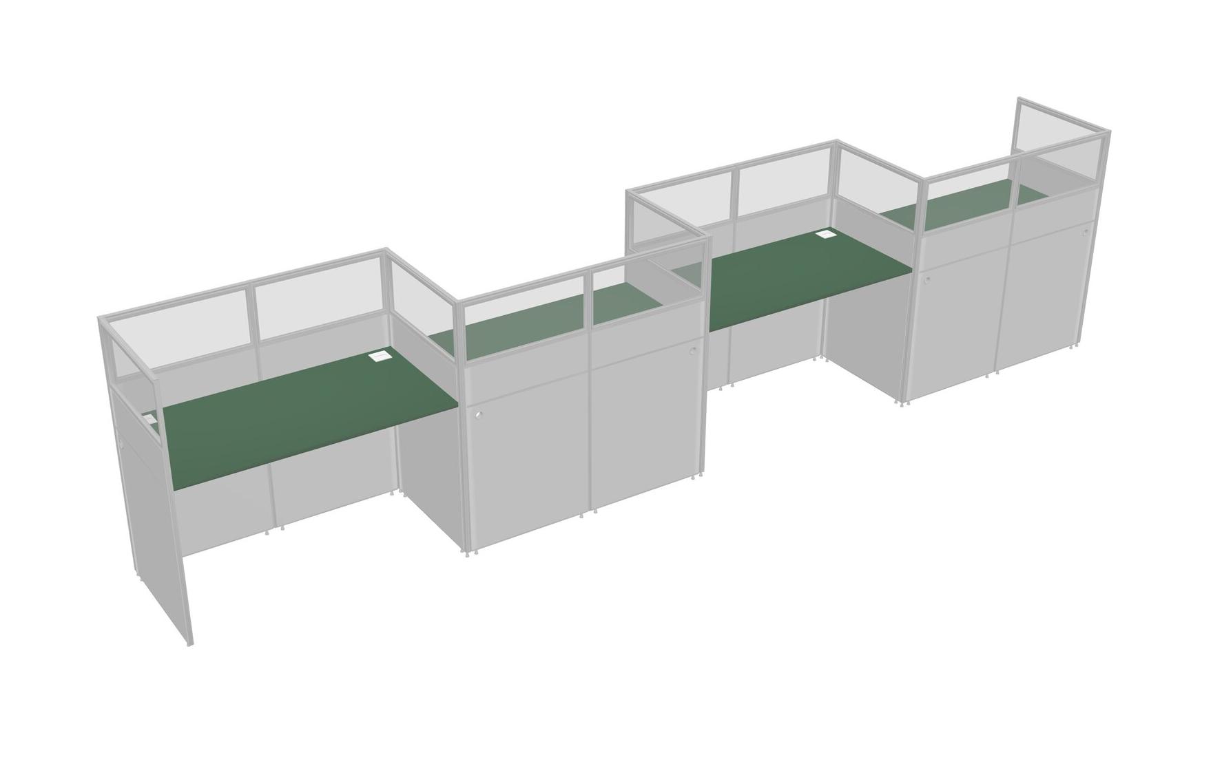 Green Rectangular Cubicle Workstations For 4 - Zigzag Formation