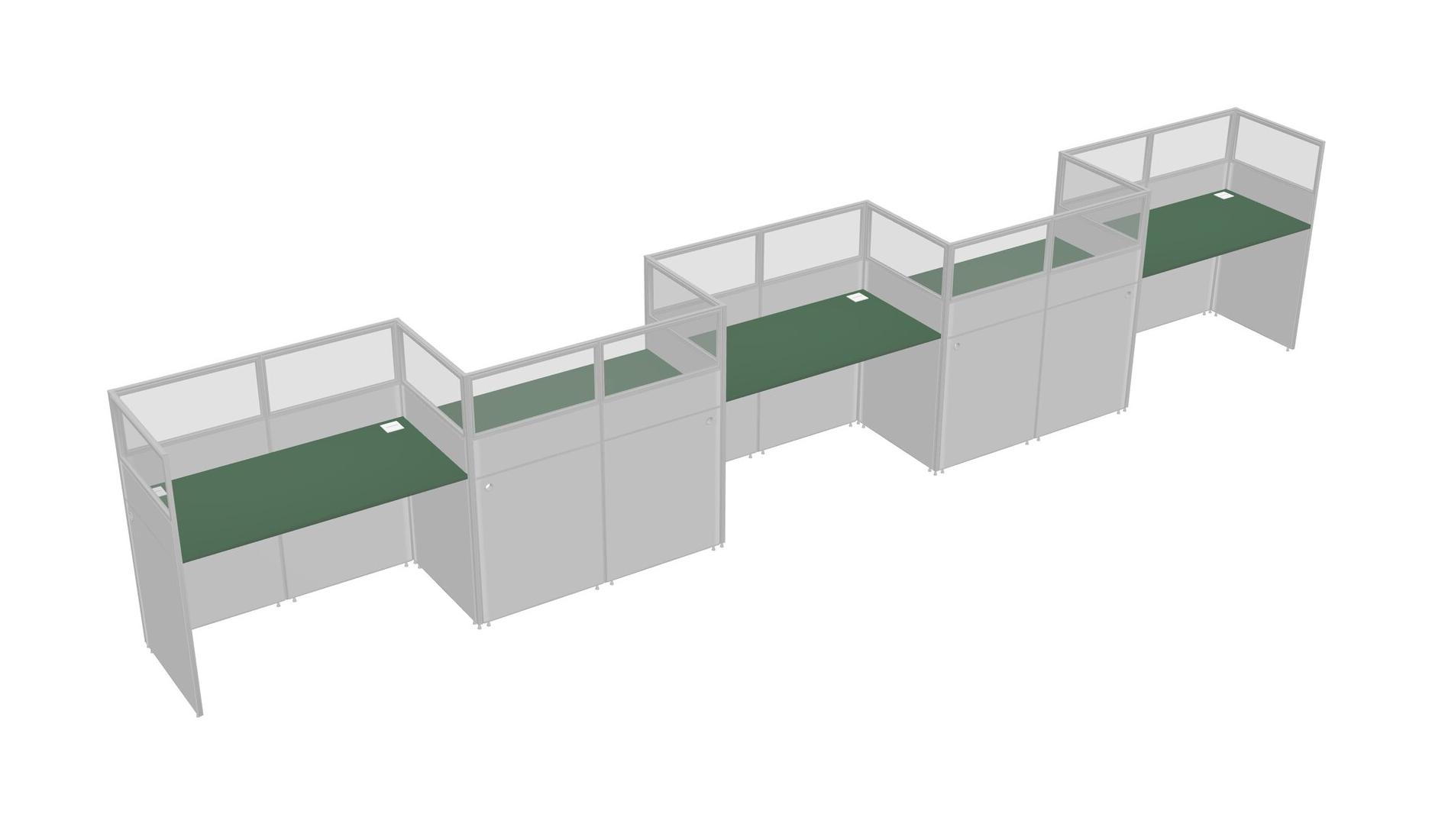 Green Rectangular Cubicle Workstations For 5 - Zigzag Formation