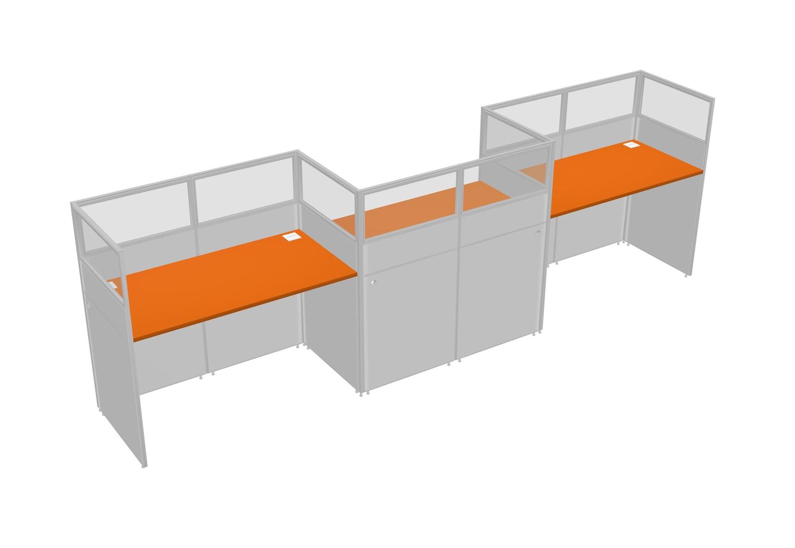 Orange Rectangular Cubicle Workstations For 3 - Zigzag Formation