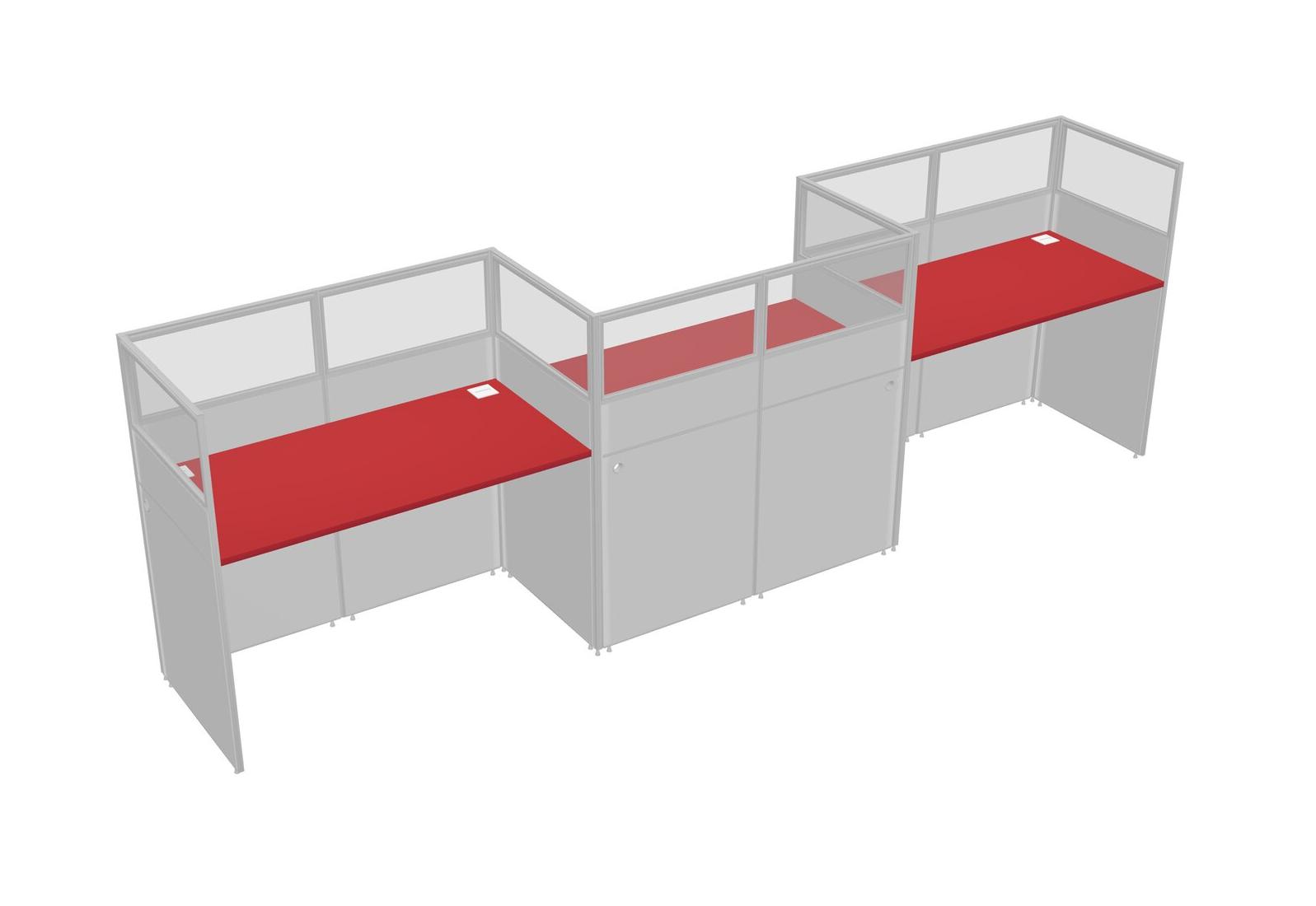 Prism Red Rectangular Cubicle Workstations For 3 - Zigzag Formation