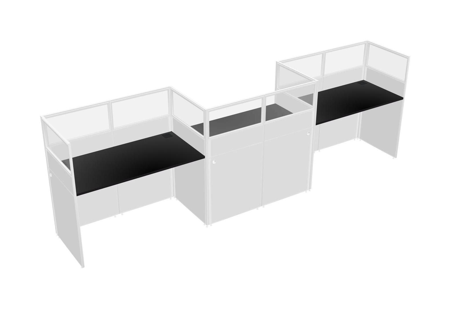 Black Rectangular Cubicle Workstations For 3 - Zigzag Formation