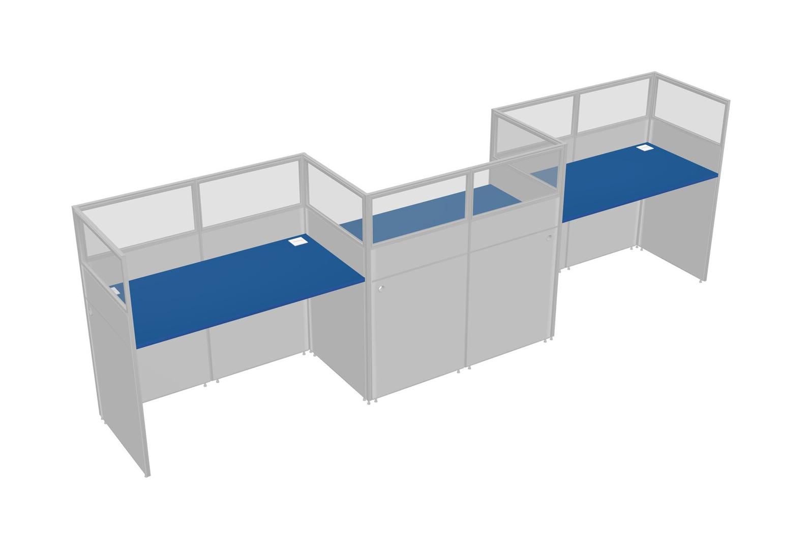 Prism Blue Rectangular Cubicle Workstations For 3 - Zigzag Formation