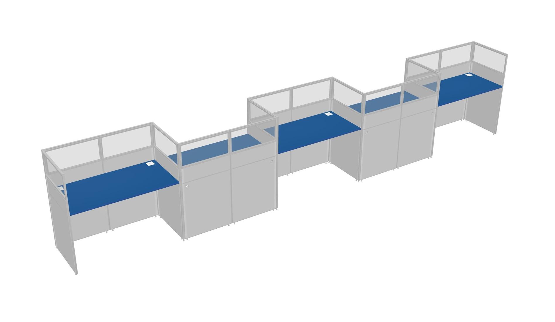 Prism Blue Rectangular Cubicle Workstations For 5 - Zigzag Formation