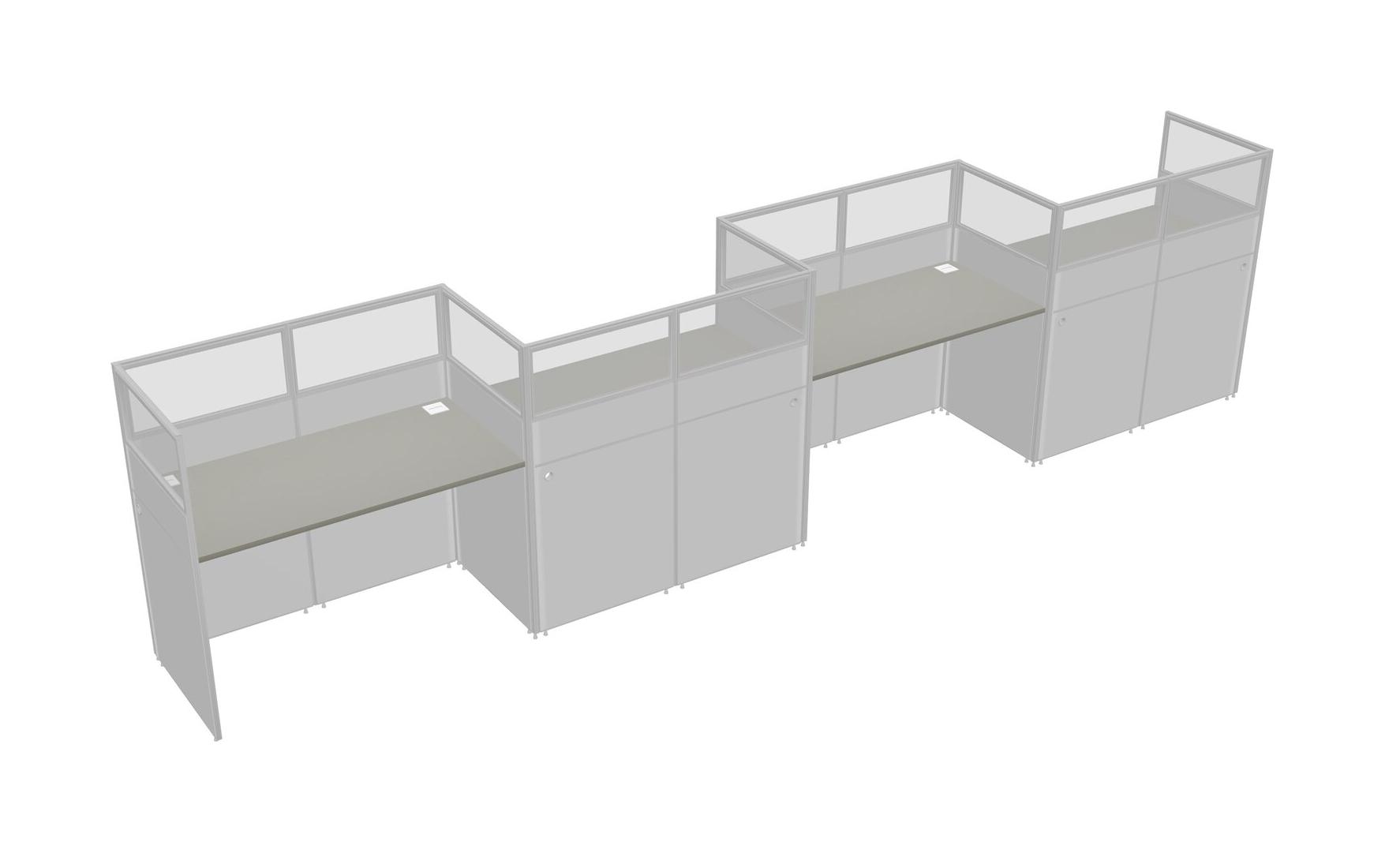 Grey Shadows Rectangular Cubicle Workstations For 4 - Zigzag Formation
