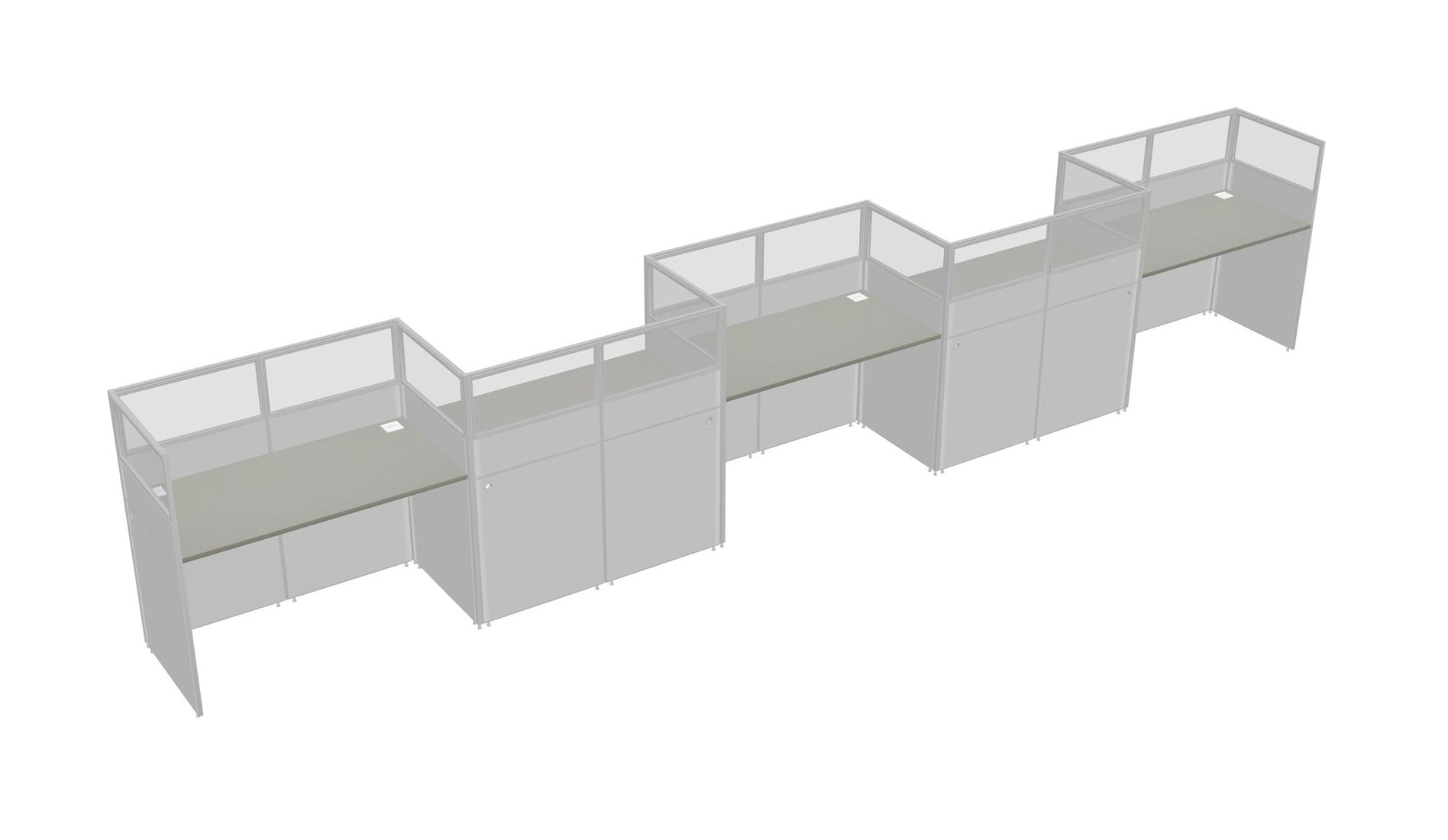 Grey Shadows Rectangular Cubicle Workstations For 5 - Zigzag Formation