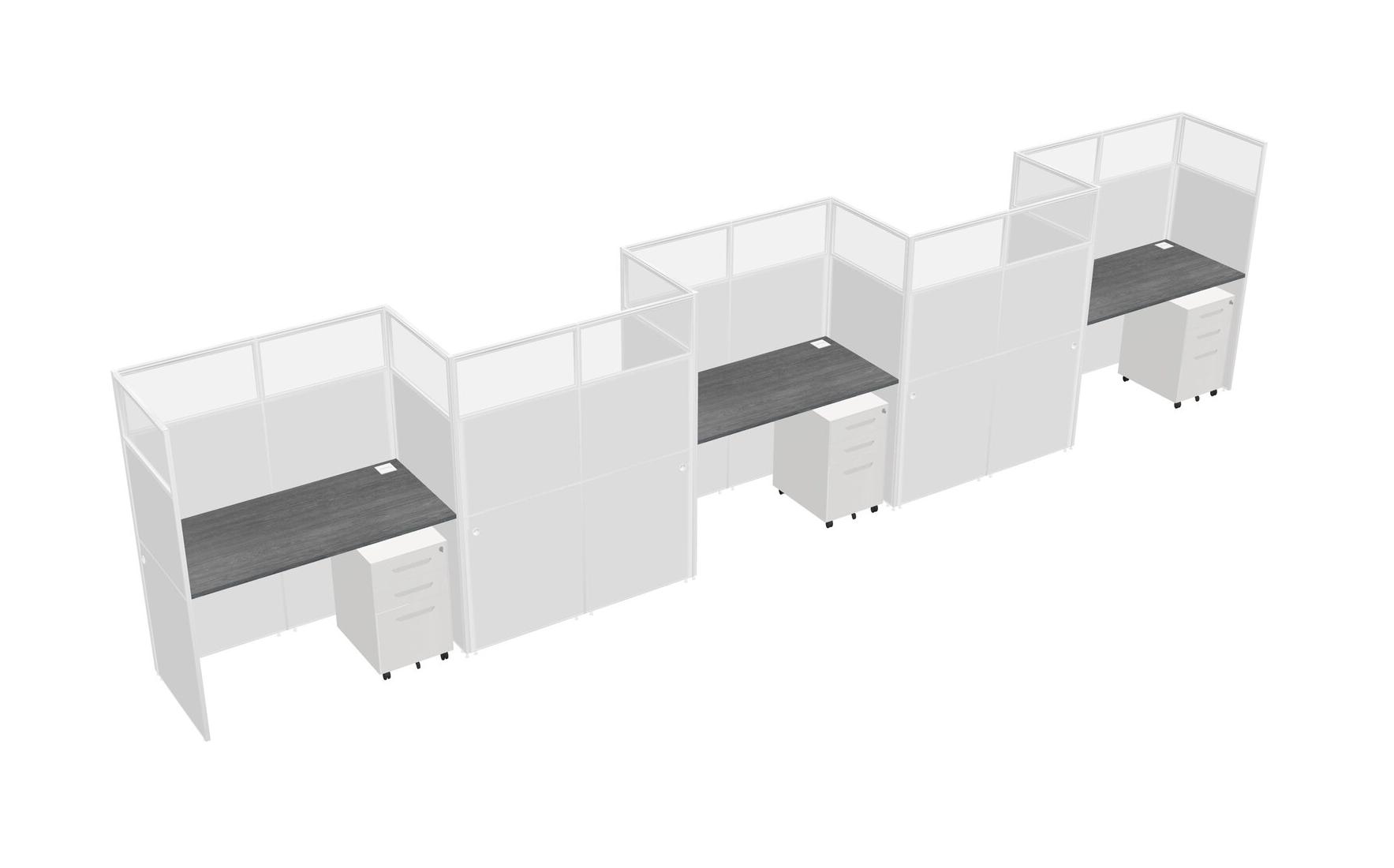 Grey Rectangular Cubicle Workstations For 5 - Zigzag Formation + White Metal Mobile Drawers