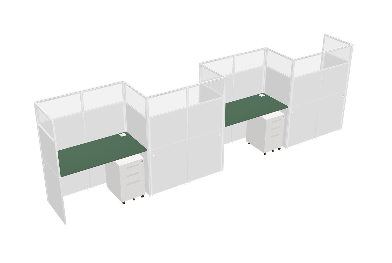 Green Rectangular Cubicle Workstations For 4 - Zigzag Formation + White Metal Mobile Drawers