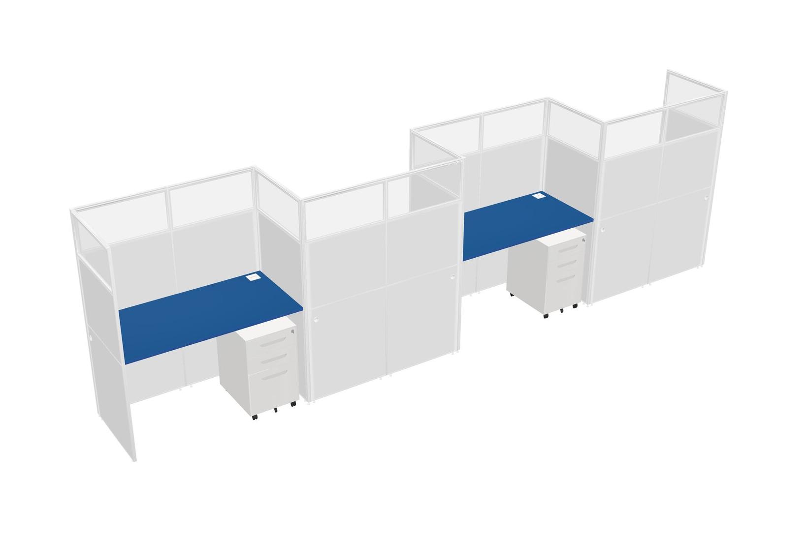 Prism Blue Rectangular Cubicle Workstations For 4 - Zigzag Formation + White Metal Mobile Drawers