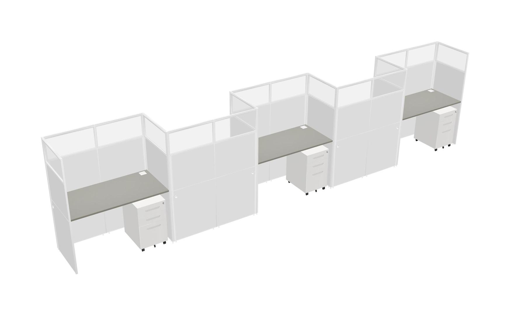 Grey Shadows Rectangular Cubicle Workstations For 5 - Zigzag Formation + White Metal Mobile Drawers