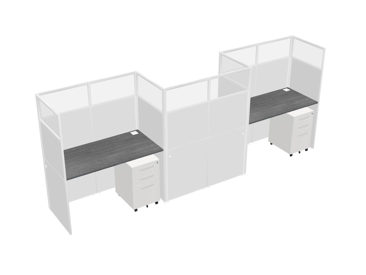 Grey Rectangular Cubicle Workstations For 3 - Zigzag Formation + White Metal Mobile Drawers