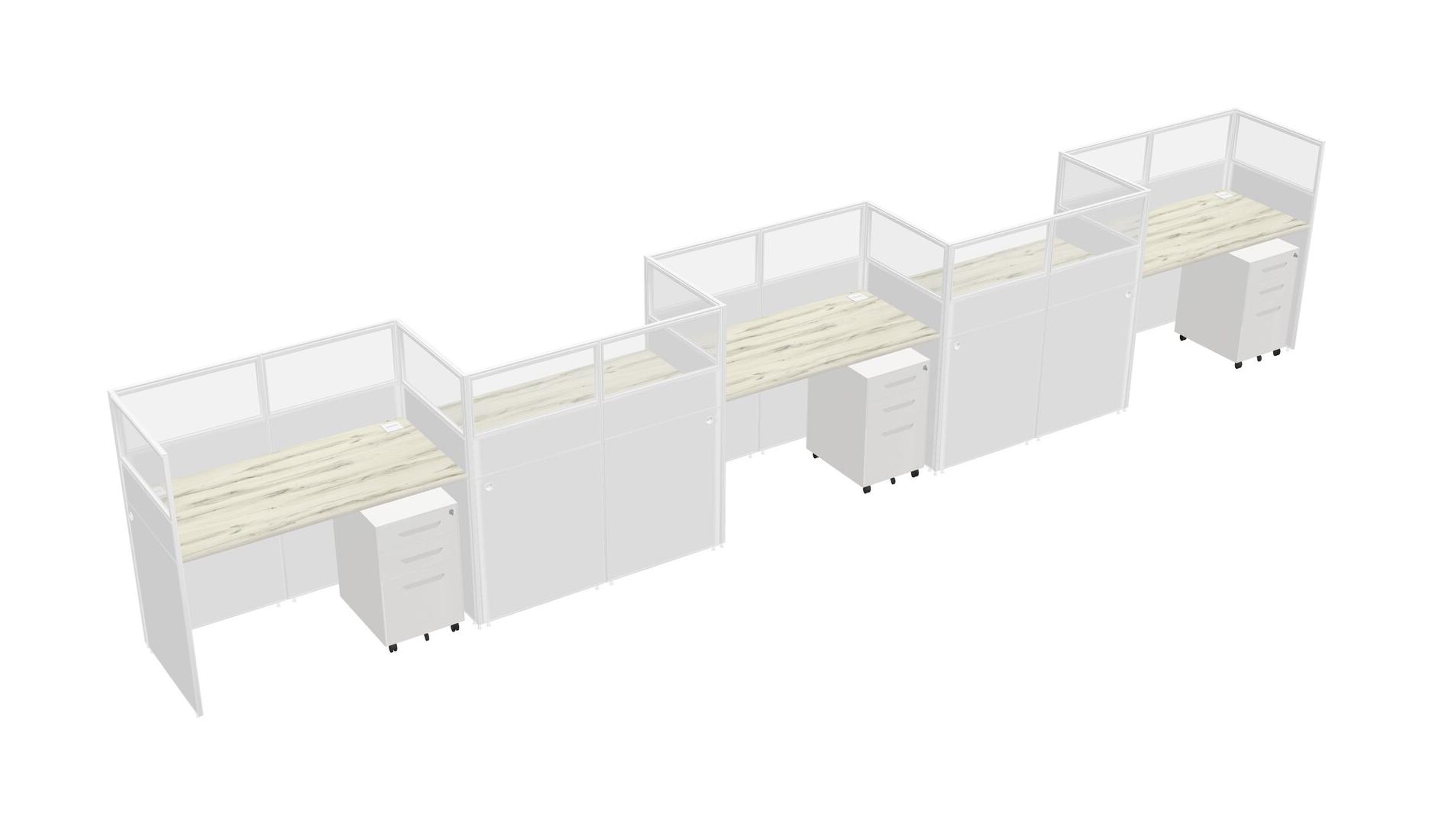 Heinne Holz Rectangular Cubicle Workstations For 5 - Zigzag Formation + White Metal Mobile Drawers