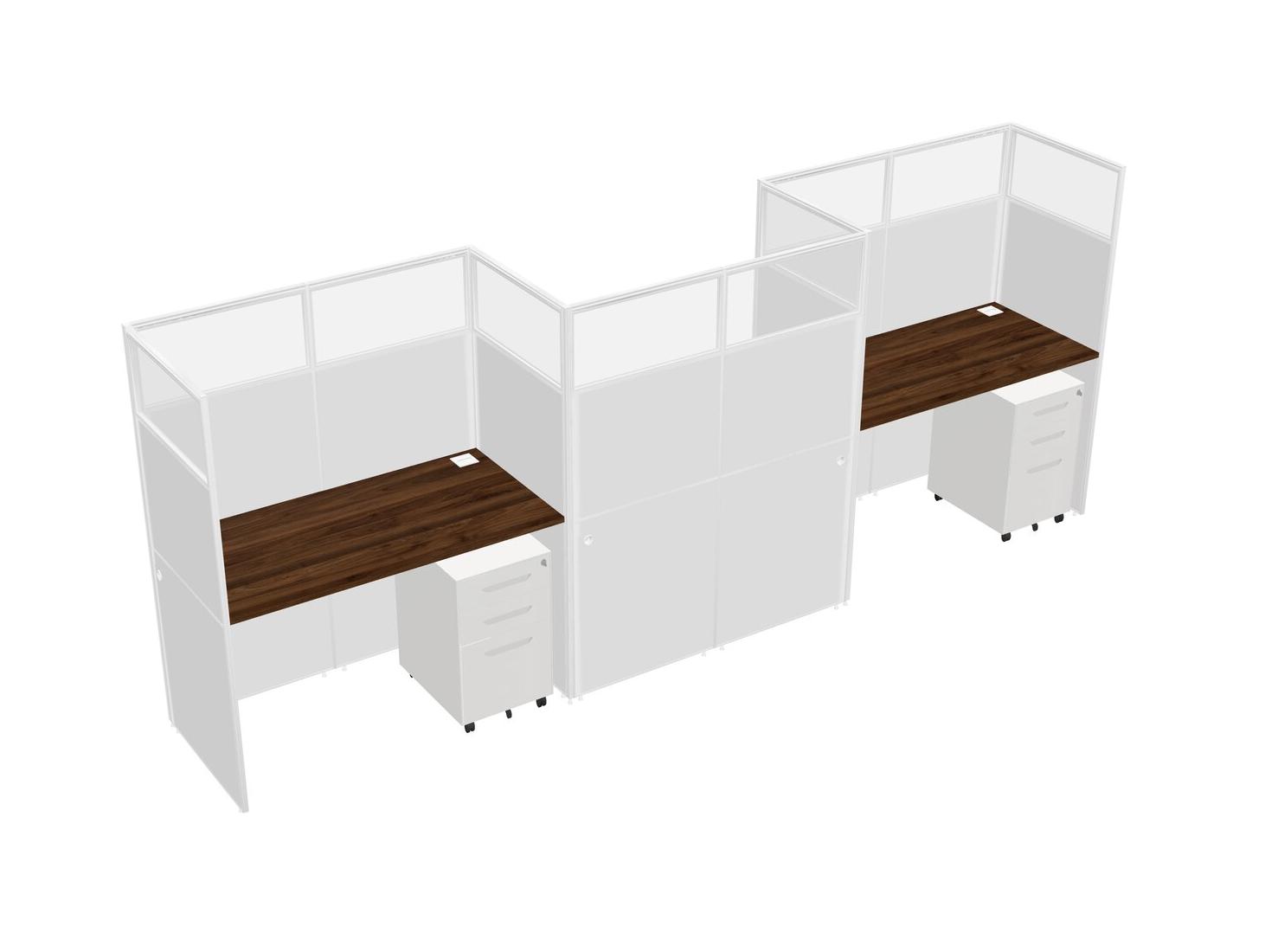 Columbia Walnut Rectangular Cubicle Workstations For 3 - Zigzag Formation + White Metal Mobile Drawers