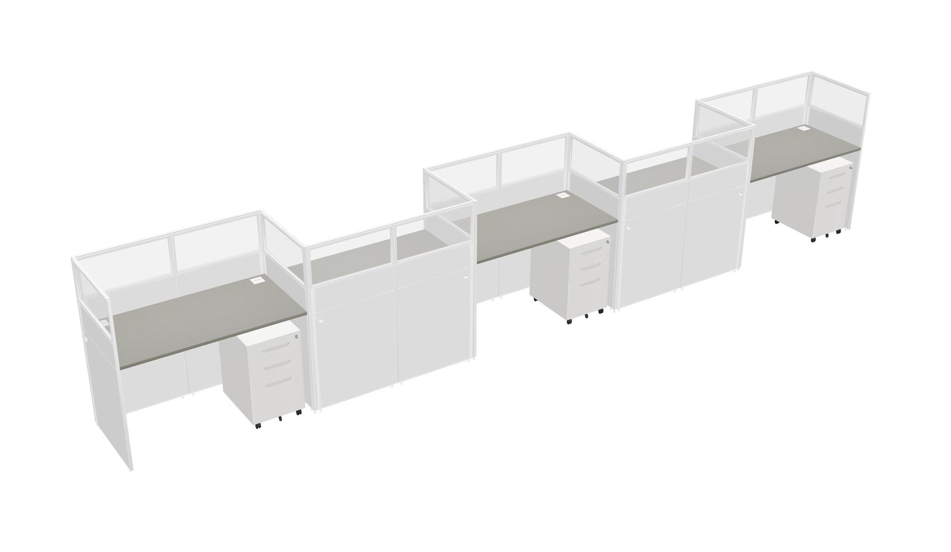 Grey Shadows Rectangular Cubicle Workstations For 5 - Zigzag Formation + White Metal Mobile Drawers