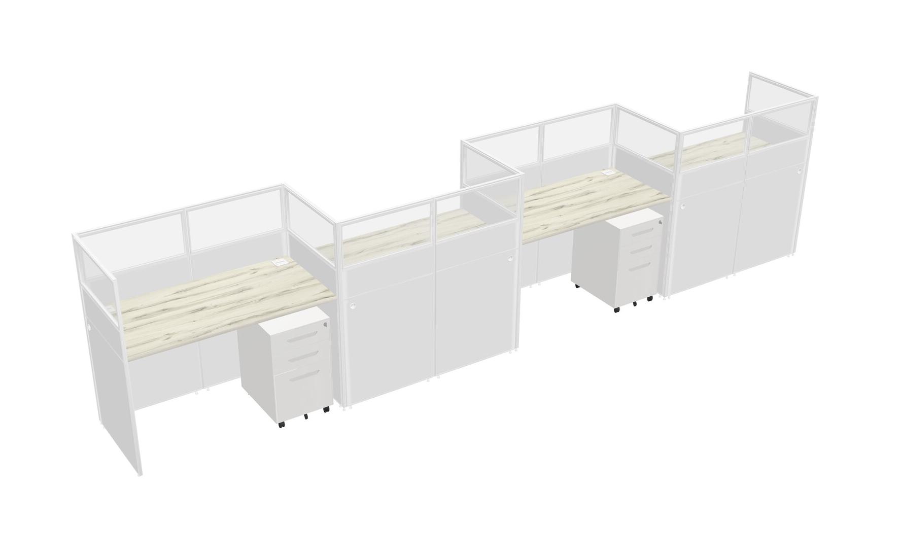 Heinne Holz Rectangular Cubicle Workstations For 4 - Zigzag Formation + White Metal Mobile Drawers